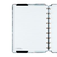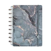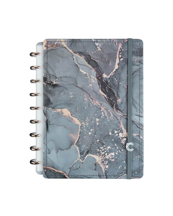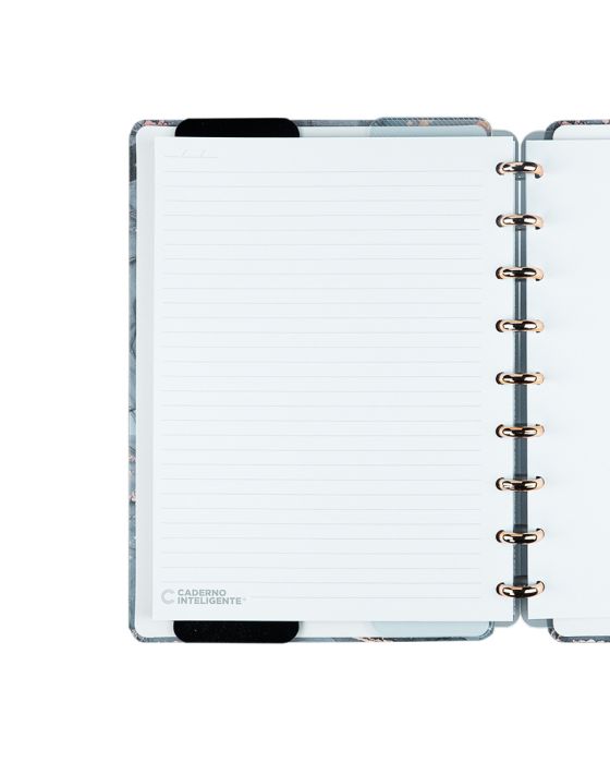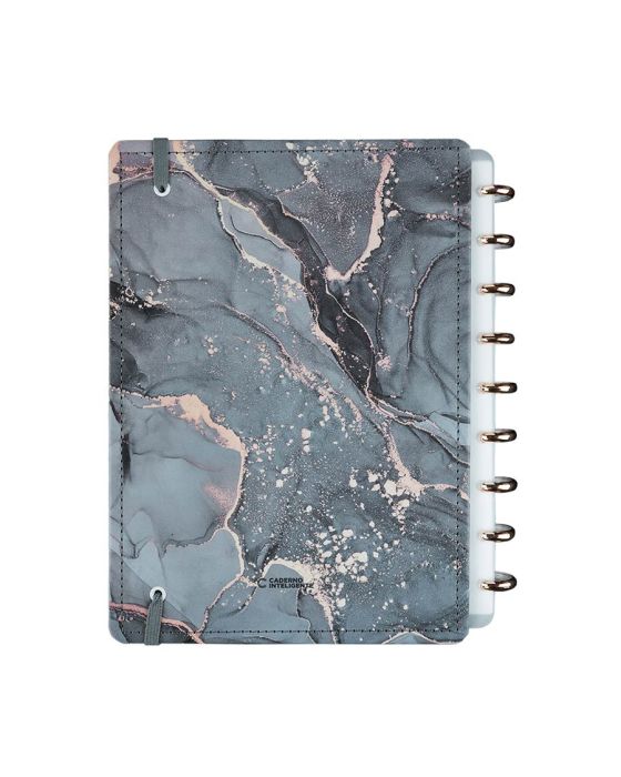 Características:Ônyx é um caderno sofisticado e elegante, na cor cinza chumbo com detalhes em dourado fosco que completam a beleza do seu novo BFF. Fabricado no Brasil, este caderno é o companheiro perfeito para os seus pensamentos nos momentos mais bonitos da vida.Com o seu formato fino, cabe facilmente na sua bolsa, tornando-o também um caderno de viagem perfeito!Caderno inteligente, só Caderno inteligente ;)Detalhes:- Marca: Caderno Inteligente;- Modelo: Ônyx;- Referência: CIMD3120;- Linha: Cadernos;- Tipo: Médio;- Cor: Cinza com estampa de mármore com detalhes em branco, dourado e incolor*;- Quantidade folhas: 80 folhas (60 pautadas e 20 lisas);- Capacidade de folhas: Até 140 folhas;- Contém: 1 unidade do produto;- Tamanho: 23mm X 175mm (23 x 17,5cm);- Gramatura: 90g/m2**;- Fechamento: em elástico na cor cinza;- Possui uma folha de adesivos decorativos;- Produto customizável, permitindo adicionar alças ou trocar os discos pela cor que preferir;- Produto atóxico;- Produto original.Indústria Brasileira. | Validade: Indeterminada.Acompanha:- Capa e contracapa rígidas;- 01 folha de adesivos;- 01 bolsa plástica;- 01 folha de instrução de uso e manuseio, com refis e acessórios da marca disponíveis no verso;- 01 folha de identificação com calendário no verso;- 04 divisórias com abas para identificação (02 pretas e 02 transparentes);- 80 folhas offset 90g (60 folhas pautadas e 20 folhas lisas brancas para impressão);- 01 suporte com elástico para 01 caneta ou 01 lápis e discos M + elástico.Instruções de manuseio:- Segure a folha com os dedos próximos aos discos e puxe-a suavemente de cima para baixo;- Nunca puxe as folhas pela lateral, isso pode danificá-las e prejudicar o encaixe posterior;- Para recolocar uma folha, posicione-a sobre os discos e encaixe-a pressionando com os dedos;- Cada tamanho de disco comporta uma quantidade máxima de itens. Respeite esse limite para não ter problemas com folhas “se soltando”.Composição:- Tecido, Celulose, ABS, PP, Látex, Poliéster e Aço.Medidas:- Dimensões do produto: 25,5 x 20,2 x 2,1cm (CxLxA);- Peso: 551g.* Por se tratar de um produto artesanal, a tonalidade pode variar;** Considerando produtos e refis da marca Caderno Inteligente.ATENÇÃO! NÃO RECOMENDÁVEL PARA CRIANÇAS DE ATÉ 3 (TRÊS) ANOS POR CONTER PARTE(S) PEQUENA(S) QUE PODEM SER ENGOLIDA(S) OU ASPIRADA(S). * As especificações podem ser alteradas sem aviso prévio ** Imagem meramente ilustrativa.