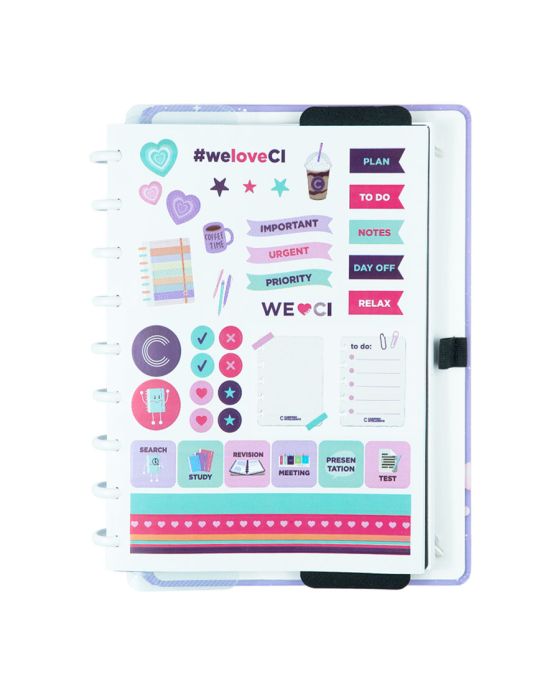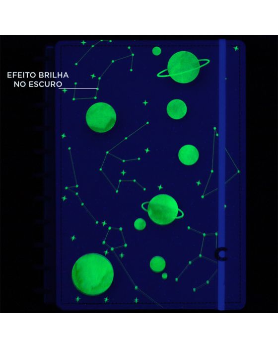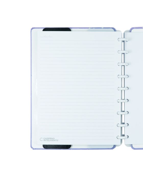 Características:O caderno que você tira e coloca folhas quando quiser! O Caderno mais FANTÁSTICO das Galáxias chegou, o Purple Galaxy by GoCase tem um acabamento que acende no escuro! Demais, né?Caderno inteligente, só Caderno inteligente ;)Detalhes:- Marca: Caderno Inteligente;- Modelo: Purple Galaxy by GoCase;- Referência: CIMD3143;- Linha: Cadernos;- Tipo: Médio;- Cor: Roxo com detalhes em branco*;- Quantidade folhas: 80 folhas (60 pautadas e 20 lisas);- Capacidade de folhas: Até 140 folhas;- Contém: 1 unidade do produto;- Tamanho: 23mm X 175mm (23 x 17,5cm);- Gramatura: 90g/m2**;- Fechamento: em elástico na cor branco;- Possui uma folha de adesivos decorativos;- Produto customizável, permitindo adicionar alças ou trocar os discos pela cor que preferir;- Produto atóxico;- Produto original.Indústria Brasileira. | Validade: Indeterminada.Acompanha:- Capa e contracapa rígidas;- 01 folha de adesivos;- 01 bolsa plástica;- 01 folha de instrução de uso e manuseio, com refis e acessórios da marca disponíveis no verso;- 01 folha de identificação com calendário no verso;- 04 divisórias com abas para identificação (02 pretas e 02 transparentes);- 80 folhas offset 90g (60 folhas pautadas e 20 folhas lisas brancas para impressão);- 01 suporte com elástico para 01 caneta ou 01 lápis e discos M + elástico.Instruções de manuseio:- Segure a folha com os dedos próximos aos discos e puxe-a suavemente de cima para baixo;- Nunca puxe as folhas pela lateral, isso pode danificá-las e prejudicar o encaixe posterior;- Para recolocar uma folha, posicione-a sobre os discos e encaixe-a pressionando com os dedos;- Cada tamanho de disco comporta uma quantidade máxima de itens. Respeite esse limite para não ter problemas com folhas “se soltando”.Composição:- Tecido, Celulose, ABS, PP, Látex, Poliéster e Aço.Medidas:- Dimensões do produto: 25,5 x 20,2 x 2,1cm (CxLxA);- Peso: 551g.* Por se tratar de um produto artesanal, a tonalidade pode variar;** Considerando produtos e refis da marca Caderno Inteligente.ATENÇÃO! NÃO RECOMENDÁVEL PARA CRIANÇAS DE ATÉ 3 (TRÊS) ANOS POR CONTER PARTE(S) PEQUENA(S) QUE PODEM SER ENGOLIDA(S) OU ASPIRADA(S). * As especificações podem ser alteradas sem aviso prévio ** Imagem meramente ilustrativa.