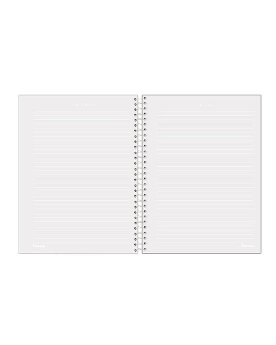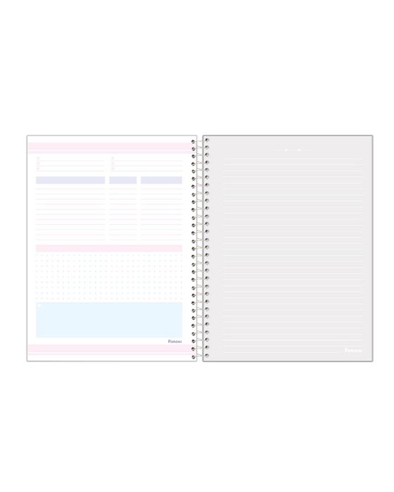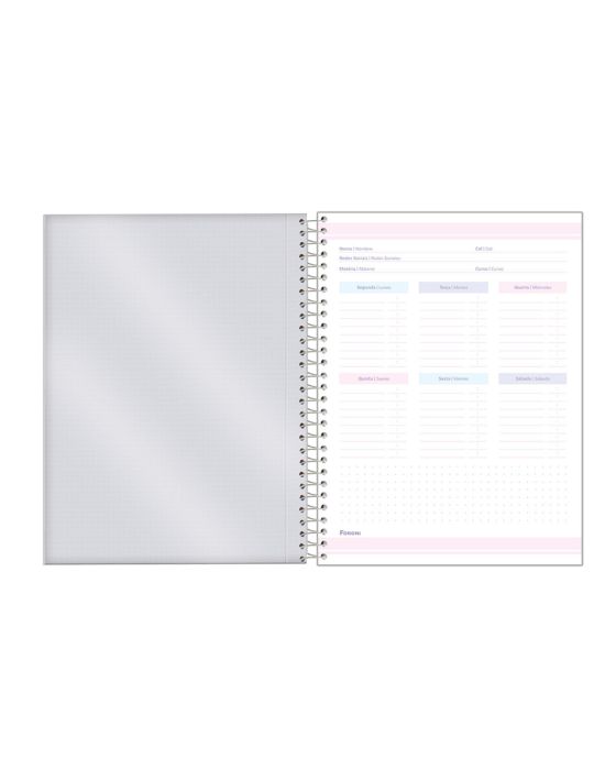 Características:O Caderno College Capa PP Fluor Mix Soft traz cores pastéis que são tendências o ano todo, modernidade e leveza - carrega consigo um design clean e sutil.Detalhes:- Marca: Foroni;- Modelo: Fluor Mix;- Referência: 3162779;- Linha: Cadernos Espiral;- Tipo: Colegial 1/4;- Capa: Capa em polipropileno (PP) com Hot Stamping (Estampas sortidas);- Quantidade de folhas: 80 folhas;- Quantidade de matérias: 1 matéria;- Contém: 1 unidade do produto com 80 folhas;- Formato: 177 x 240mm (17,7 x 24cm);- Gramatura: 63g/m2;- Cor espiral: Branco;- Folhas: Pautada na cor branca;- Cor das folhas: Cinza;- Fechamento: Elástico na cor prata;- Bolsa plástica;- Possui encarte colorido;- Índice/separador de matérias decorados;- Miolo;- Produto certificado: FSC.Composição; - Capa: Capa em Polipropileno (PP);- Folhas Internas: Papel Offset 63g/m2.Medidas:- Formato: 177 x 240mm (17,7 x 24cm);- Gramatura: 63g/m². Estampas sortidas, será enviado de acordo com a disponibilidade do estoque. Não é possível escolher uma estampa específica.* As especificações podem ser alteradas sem aviso prévio ** Imagem meramente ilustrativa.