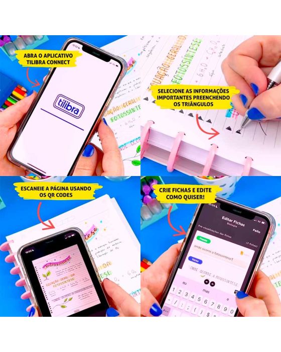 Características:O Caderno Espiral Capa Plástica Universitário 1 Matéria Neon Connect feminino 80 Folhas possui capa com acabamento metalizado, parte interna decorada, bolsa plástica para guardar trabalhos e anotações, folha com adesivos funcionais e folhas pautadas. Ideal para o dia a dia na escola ou na faculdade.Além disso, as folhas desse caderno são compatíveis com o aplicativo Tilibra Connect, disponível gratuitamente na Apple Store e Google Play. Com esse app você consegue digitalizar suas anotações com mais agilidade, elaborar perguntas e respostas com o conteúdo escaneado, ciar e revisar fichas. Mais praticidade para estudar em qualquer hora e lugar!Detalhes:- Marca: Tilibra;- Modelo: Neom Connect;- Referência: 350109;- Linha: Cadernos Linguagem ;- Tipo: Feminino;- Capa: Polipropileno estampada (Estampas sortidas);- Contra capa: Contra capa decorada;- Quantidade de folhas: 80 folhas;- Quantidade de matérias: 1 matéria;- Contém: 1 unidade do produto com 80 folhas;- Formato: 200 x 275mm (20 x 27,5cm);- Gramatura: 56g/m2;- Espiral: Dourado;- Folhas: pautadas na cor preta;- Possui uma cartela de adesivos funcionais;- Índice/separador de matérias;- Miolo;- Produto certificado: FSC.Como usar:1º: Personalize as páginas de acordo com a sua necessidade e gosto;2º Abra o App Tilbra Connect;3º: Selecione as informações importantes preenchendo os triângulos;4º: Escaneie os códigos usando os Qr Codes;5ª: Crie fichas e edite como quiser;6º: Estude jogando e se torne um expert em todas as matérias;7º: Organize suas fichas e pastas de acordo com o tema das matérias, podendo ser destacadas com cores.Medidas:- Dimensões do produto: 200 x 275mm (20 x 27,5cm);- Gramatura: 56g/m2.Baixe agora mesmo o App Tilibra Connect e desbloqueie todas as funções que este caderno pode te oferecer para os estudos ou trabalho: App Store (IOS): https://apps.apple.com/br/app/tilibra-connect/id6455303824Google Play (Android): https://play.google.com/store/search?q=tilibra+connect&c=apps&hl=pt_BR&gl=USEstampas sortidas, será enviado de acordo com a disponibilidade do estoque. Não é possível escolher uma estampa específica.* As especificações podem ser alteradas sem aviso prévio ** Imagem meramente ilustrativa