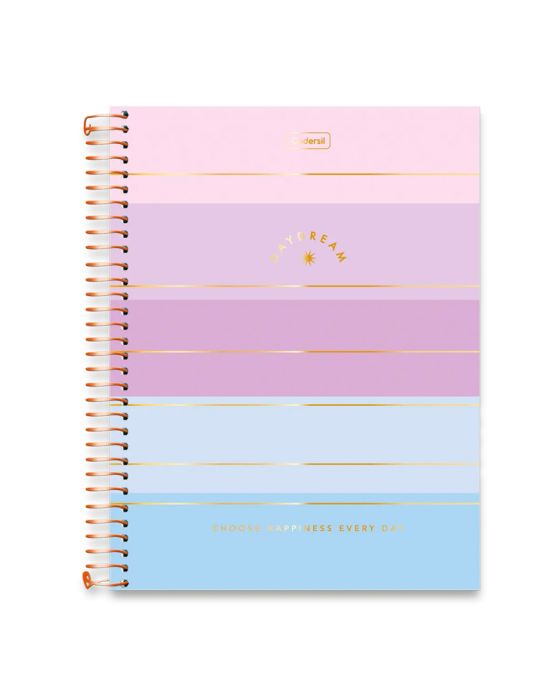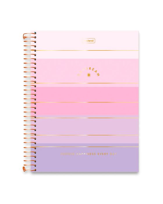 Características:Esta é a opção perfeita para você que gosta de manter um cronograma de estudos organizado, e colocar as matérias em dia. O caderno universitário da linha Daydream também é um planner, nele você pode fazer um planejamento anual ou mensal da sua rotina, além de ter folhas diferenciadas para deixar as suas anotações importantes mais dinâmicas.Detalhes:- Marca: Cadersil;- Modelo: DayDream;- Referência: 0611007;- Linha: Cadernos Espiral;- Tipo: Universitário + Planner;- Capa: Capa Dura com laminação fosca e Hot Stamping dourado (Estampas sortidas);- Contra capa: Contra capa simples;- Quantidade de folhas: 80 folhas;- Quantidade de matérias: 1 matéria;- Contém: 1 unidade do produto com 80 folhas;- Formato: 199 x 270mm (19,9 x 27cm);- Gramatura: 56g/m2;- Cor espiral: Rose Gold;- Folhas: Pautada na cor preto;- Cor das folhas: Branca;- Bolsa portfólio;- Possui uma cartela de adesivos funcionais;- Possui microsserrilhas;- Possui planner/ Calendário de 2 anos com planejamento anual e mensal;- Divisórias de matérias;- Folha pontilhada e quadriculada;- Editorial;- Miolo.Composição; - Capa: Capa em papelão e papel Couché;- Folhas Internas: Papel Offset 56g/m2.Medidas:- Formato: 199 x 270mm (19,9 x 27cm);- Gramatura: 56g/m². Estampas sortidas, será enviado de acordo com a disponibilidade do estoque. Não é possível escolher uma estampa específica.* As especificações podem ser alteradas sem aviso prévio ** Imagem meramente ilustrativa.