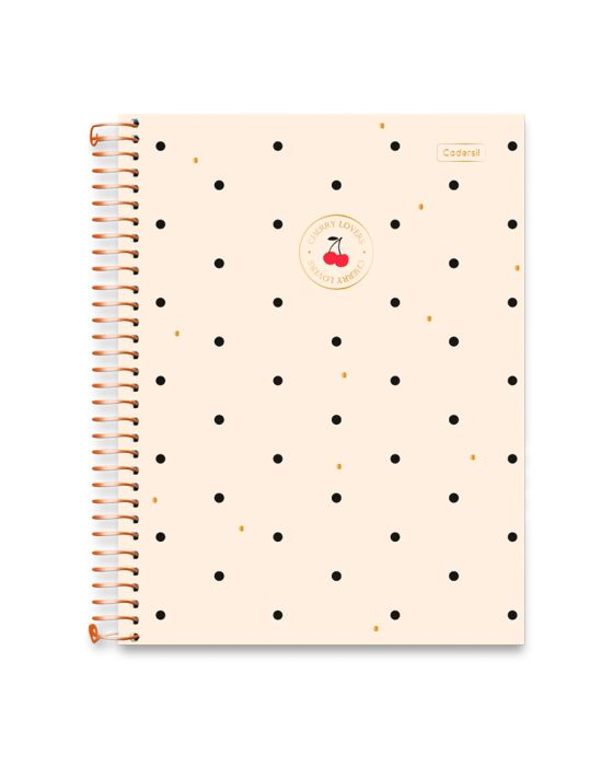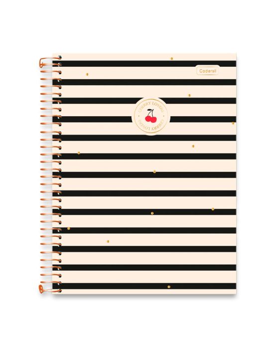 Características: A tendência da vez! A cerejinha do bolo chegou para encantar e adoçar seu dia a dia. O Caderno Universitário espiral é perfeito para te acompanhar nos estudos! Ele vem com bolsa portfólio, cartela de adesivos, divisórias de matérias e muito mais. Os Cherry lovers vão amar!Detalhes:- Marca: Cadersil;- Modelo: Cherry lovers; - Linha: Caderno Espiral;- Tipo: Caderno Universitário;- Capa: Capa Dura com laminação fosca com Hot Stamping (Estampas sortidas);- Contra capa: Contra capa simples;- Quantidade de folhas: 160 folhas;- Quantidade de matérias: 10 matérias;- Contém: 1 unidade do produto com 160 folhas;- Formato: 199 x 270mm (19,9 x 27cm);- Gramatura: 56g/m2;- Cor espiral: Dourado;- Folhas: pautadas cinza;- Possui uma cartela de adesivos;- Possui bolsa dupla de papel decorada;- Índice/separador de matérias decorado;- Miolo com microsserrilhas;- Editorial;- Espaço para anotações.Medidas:- Dimensões do produto: 199 x 270mm (19,9 x 27cm);- Gramatura: 56g/m2.Estampas sortidas, será enviado de acordo com a disponibilidade do estoque. Não é possível escolher uma estampa específica.* As especificações podem ser alteradas sem aviso prévio ** Imagem meramente ilustrativa.