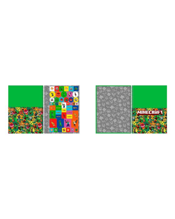 Caracteristicas:O Caderno Espiral Universitário Minecraft possui capa dura com a parte interna decorada, bolsa de papel para guardar trabalhos e anotações,folha de adesivos, folhas pautadas e espiral preto. Ideal para o dia a dia na escola ou na faculdade.- 10 matérias com 160fls- 4 opções de capas- Bolsa de papel - folha de adesivos- Divisória Decorada- Espiral Preto- Guarda Decorada- Laminação fosaca- Pauta Decorada- Verniz Reserva* As especificações podem ser alteradas sem aviso prévio ** Imagem meramente ilustrativa.