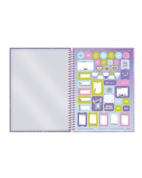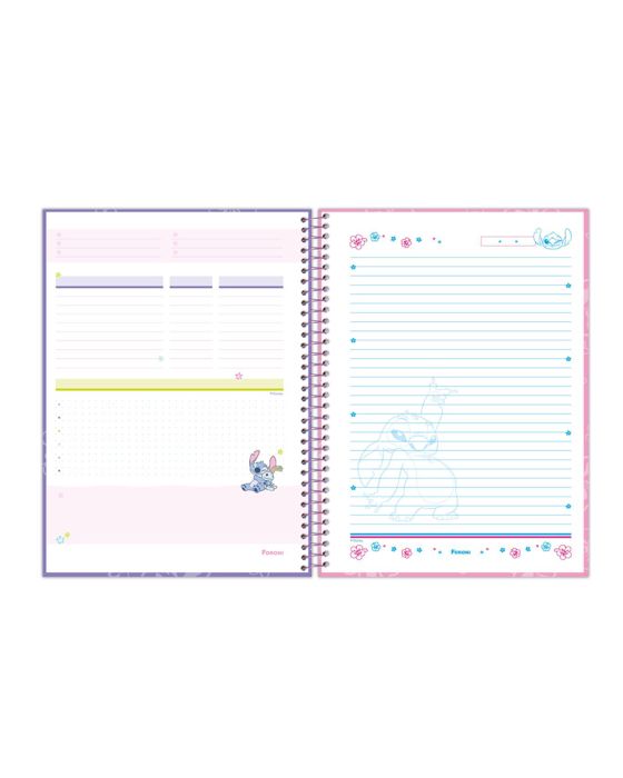 Características:O Stitch (também conhecido como Experimento 626) é um dos personagens mais queridos e divertidos do universo da Disney. O Caderno Universitário Capa Dura busca retratar o personagem no mundo das redes sociais, com elementos e cores características em sua composição.Detalhes:- Marca: Foroni;- Modelo: Stitch;- Referência: 3365246;- Linha: Cadernos Espiral;- Tipo: Universitário;- Capa: Capa dura com laminação fosca e Super Hot Stamping (Estampas sortidas);- Quantidade de folhas: 160 folhas;- Quantidade de matérias: 10 matérias;- Contém: 1 unidade do produto com 160 folhas;- Formato: 200 x 275mm (20 x 27,5cm);- Gramatura: 56g/m2;- Cor espiral: Lilás;- Folhas: Pautada decorada colorida;- Cor das folhas: Branco;- Possui uma cartela de adesivos funcionais;- Bolsa plástica;- Índice/separador de matérias decorados;- Miolo;- Produto certificado: FSC.Composição; - Capa: Capa em papelão e papel Couché;- Folhas Internas: Papel Offset 56g/m2.Medidas:- Formato: 200 x 275mm (20 x 27,5cm);- Gramatura: 56g/m². Estampas sortidas, será enviado de acordo com a disponibilidade do estoque. Não é possível escolher uma estampa específica.* As especificações podem ser alteradas sem aviso prévio ** Imagem meramente ilustrativa.