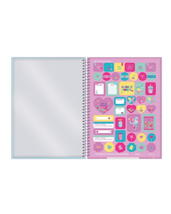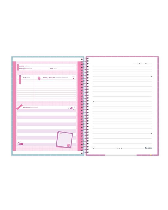 Características:O Caderno Universitário Capa Dura Sugar Rush foi idealizado pensando em trazer muita doçura e meiguice em suas capas.Detalhes:- Marca: Foroni;- Modelo: Sugar Rush;- Referência: 3169676;- Linha: Cadernos Espiral;- Tipo: Universitário;- Capa: Capa Dura com laminação fosca e Super Hot Stamping (Estampas sortidas);- Contra capa: Contra capa decorada;- Quantidade de folhas: 160 folhas;- Quantidade de matérias: 10 matérias;- Contém: 1 unidade do produto com 160 folhas;- Formato: 200 x 275mm (20 x 27,5cm);- Gramatura: 56g/m2;- Espiral: Lilás;- Folhas: pautadas cinza decorada;- Possui bolsa plástica transparente;- Possui uma cartela de adesivos especiais;- Índice/separador de matérias decorado;- Miolo;- Folhas destacáveis;- Produto certificado: FSC.Composição:- Capa: Fabricado em papelão e papel couché;- Folhas Internas: Papel Offset 56g/m2.Medidas:- Dimensões do produto: 200 x 275mm (20 x 27,5cm);- Gramatura: 56g/m2.Estampas sortidas, será enviado de acordo com a disponibilidade do estoque. Não é possível escolher uma estampa específica.* As especificações podem ser alteradas sem aviso prévio ** Imagem meramente ilustrativa