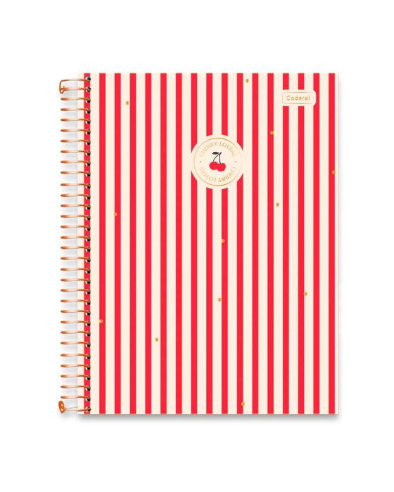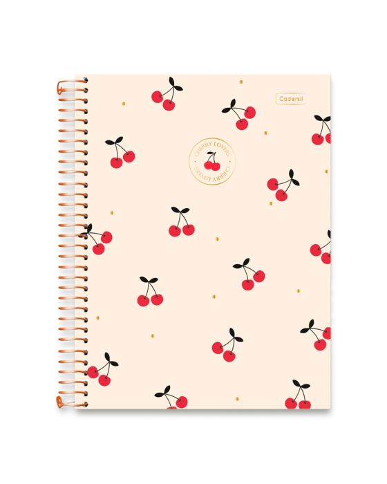 Características: A tendência da vez! A cerejinha do bolo chegou para encantar e adoçar seu dia a dia. O Caderno Universitário espiral é perfeito para te acompanhar nos estudos! Ele vem com bolsa portfólio, cartela de adesivos, divisórias de matérias e muito mais. Os Cherry lovers vão amar!Detalhes:- Marca: Cadersil;- Modelo: Cherry lovers; - Linha: Caderno Espiral;- Tipo: Caderno Universitário;- Capa: Capa Dura com laminação fosca com Hot Stamping (Estampas sortidas);- Contra capa: Contra capa simples;- Quantidade de folhas: 80 folhas;- Quantidade de matérias: 1 matéria;- Contém: 1 unidade do produto com 80 folhas;- Formato: 199 x 270mm (19,9 x 27cm);- Gramatura: 56g/m2;- Cor espiral: Dourado;- Folhas: pautadas cinza;- Possui uma cartela de adesivos;- Possui bolsa dupla de papel decorada;- Índice/separador de matérias decorado;- Miolo com microsserrilhas;- Editorial;- Espaço para anotações.Medidas:- Dimensões do produto: 199 x 270mm (19,9 x 27cm);- Gramatura: 56g/m2.Estampas sortidas, será enviado de acordo com a disponibilidade do estoque. Não é possível escolher uma estampa específica.* As especificações podem ser alteradas sem aviso prévio ** Imagem meramente ilustrativa.