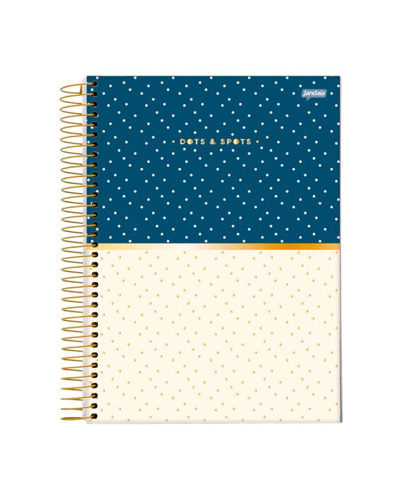 Características:Em um mercado saturado por opções exageradas e excessivamente ornamentadas, a linha Dots & Spots escolhe se destacar com uma abordagem que celebra a simplicidade, a elegância e a funcionalidade. Com suas capas minimalistas e com muito hot stamping, a marca conquista corações que buscam um equilíbrio entre a beleza e a utilidade em seus acessórios diários. A linha Dots & Spots cativa uma variedade de personas que apreciam a arte de elevar o estilo através da simplicidade.Detalhes:- Marca: Jandaia;- Modelo: Dots & Spots;- Referência: 72798-23;- Linha: Cadernos Espiral;- Tipo: Universitário;- Capa: Capa Dura com laminação fosca e Hot Stamping (Estampas sortidas);- Contra capa: Contra capa decorada;- Quantidade de folhas: 80 folhas;- Quantidade de matérias: 1 matéria;- Contém: 1 unidade do produto com 80 folhas;- Formato: 200 x 275mm (20 x 27,5cm);- Gramatura: 56g/m2;- Cor Espiral: Dourada;- Folhas: pautadas na cor cinza;- Cor das folhas: Off White;- Bolsa de papel dupla decorada;- Possui uma cartela de adesivos funcionais;- Índice/separador de matérias decorados;- Miolo decorado;- Produto certificado: FSC.Composição; - Capa: Capa em papelão e papel Couché;- Folhas Internas: Papel Offset 56g/m2.Medidas:- Formato: 200 x 275mm (20 x 27,5cm);- Gramatura: 56g/m². Estampas sortidas, será enviado de acordo com a disponibilidade do estoque. Não é possível escolher uma capa específica.* As especificações podem ser alteradas sem aviso prévio ** Imagem meramente ilustrativa.
