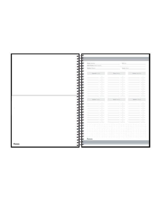 Características:O Caderno Universitário Fluor Mix Preta é um coringa para o ano inteiro.Detalhes:- Marca: Foroni;- Modelo: Fluor Mix;- Referência: 3195146;- Linha: Cadernos Espiral;- Tipo: Universitário;- Capa: Capa em polipropileno (PP) na cor preta com Silk Screen;- Quantidade de folhas: 80 folhas;- Quantidade de matérias: 1 matéria;- Contém: 1 unidade do produto com 80 folhas;- Formato: 200 x 275mm (20 x 27,5cm);- Gramatura: 56g/m2;- Cor espiral: Preta;- Folhas: Pautada preta;- Cor das folhas: Branco;- Bolsa de papel simples;- Índice/separador de matérias decorados;- Miolo;- Produto certificado: FSC.Composição; - Capa: Capa em polipropileno (PP);- Folhas Internas: Papel Offset 56g/m2.Medidas:- Formato: 200 x 275mm (20 x 27,5cm);- Gramatura: 56g/m². * As especificações podem ser alteradas sem aviso prévio ** Imagem meramente ilustrativa.