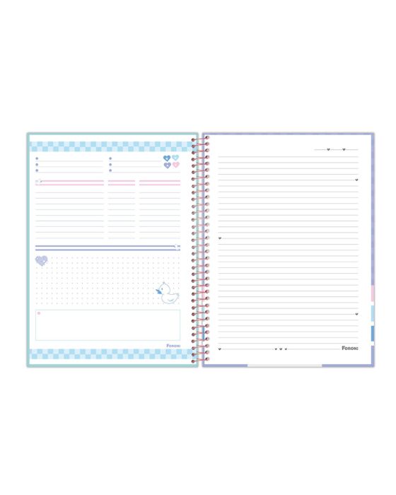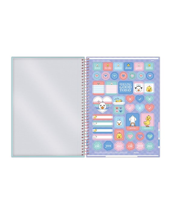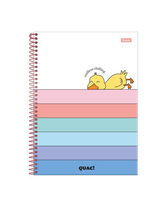 Características:O Caderno Universitário Capa Dura Quac! possui em suas capas a presença de patinhos - um animal que vêm ganhando cada vez mais destaque nas redes sociais. O desenho caricato e as cores chamativas da linha deixem a rotina mais alegre e divertida.Detalhes:- Marca: Foroni;- Modelo: Quac!;- Referência: 3164615;- Linha: Cadernos Espiral;- Tipo: Universitário;- Capa: Capa Dura com laminação fosca e Super Hot Stamping (Estampas sortidas);- Contra capa: Contra capa decorada;- Quantidade de folhas: 80 folhas;- Quantidade de matérias: 1 matéria;- Contém: 1 unidade do produto com 80 folhas;- Formato: 200 x 275mm (20 x 27,5cm);- Gramatura: 56g/m2;- Espiral: Rose Gold;- Folhas: pautadas cinza decorada;- Possui bolsa plástica transparente;- Possui uma cartela de adesivos especiais;- Índice/separador de matérias decorado;- Miolo;- Produto certificado: FSC.Composição:- Capa: Fabricado em papelão e papel couché;- Folhas Internas: Papel Offset 56g/m2.Medidas:- Dimensões do produto: 200 x 275mm (20 x 27,5cm);- Gramatura: 56g/m2.Estampas sortidas, será enviado de acordo com a disponibilidade do estoque. Não é possível escolher uma estampa específica.* As especificações podem ser alteradas sem aviso prévio ** Imagem meramente ilustrativa.