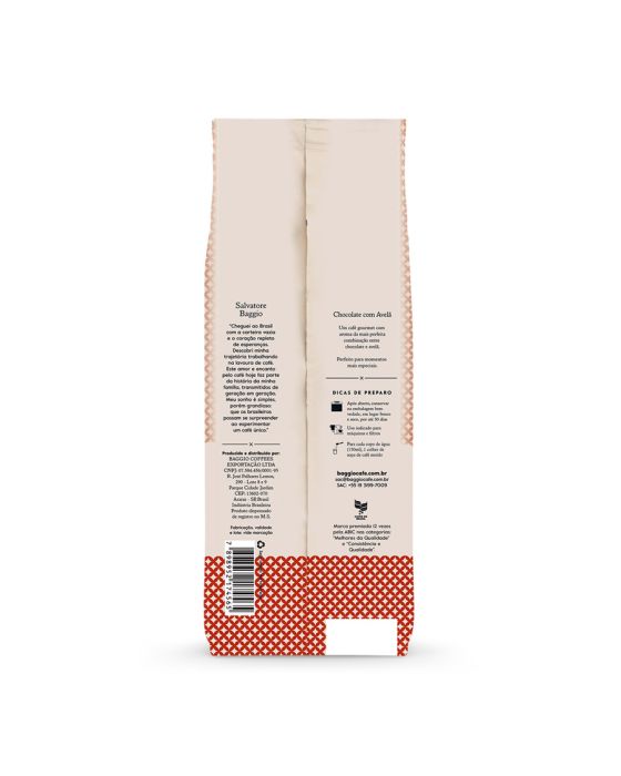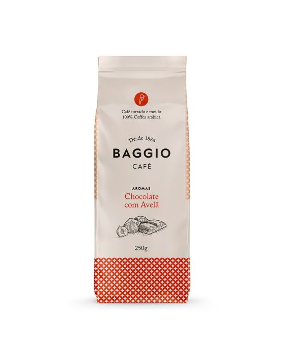Características:O café aromatizado Chocolate com Avelã tem sabor equilibrado e intensidade média, perfeitamente equilibrados com textura encorpada e aveludada, e aftertaste prolongado, tornando a experiência de beber café ainda mais prazerosa.Você sentirá um delicioso aroma de nozes e notas de chocolate que deixam um sabor duradouro na boca. O equilíbrio entre o doce do chocolate ao leite e o sabor tostado da avelã oferecem um sabor único e marcante.Detalhes:- Marca: Baggio Cafés;- Linha: Cafés;- Sabor: Chcolate com Avelã;- Tipo: Moído;- Peso: 250g;- Itensidade: 07;- Origem: Mogiana Paulista e sul de Minas Gerais;- Contém: 1 unidade do produto;- Extração recomendada: 50ml;- Compatibilidade: Ideal para metódos de preparo com cafés torrados e moídos, como cafeteira italiana, filtros, prensa francesa, aeropress, espressos, coados, entre outros;- Experiência sensorial única e agradável;- Textura encorpada e aveludada;- Tipo de grão: 100% Arábica.Corpo: - Aroma: Chocolate com Avelã;- Notas: Nozes e castanhas tostadas, chocolate ao leite;- Harmoniza com: Sobremesas e finalizações;- Moagem: Média;- Torra: Média;- Bebida: Mole.Dicas de preparo:- Após aberto, conservar em local fresco, seco e arejado por até 30 dias;- Uso indicado para máquinas e filtros;- Para cada copo de água (150ml), 1 colher de sopa de café.Ingredientes:- Café torrado moído e aromatizantes.ALÉRGICOS: NÃO CONTÉM LACTOSE. NÃO CONTÉM GLÚTEN. NÃO CONTÉM AÇÚCAR. NÃO CONTÉM LEITE E DERIVADOS. * As especificações podem ser alteradas sem aviso prévio ** Imagem meramente ilustrativa.