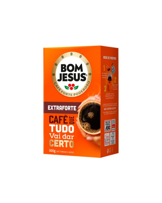 Características:Em casa, no trabalho, o dia todo, a qualquer hora do dia, o Café Bom Jesus está sempre ao seu lado. Conte para nós o que o Café Bom Jesus significa para você e em qual momento do seu dia ele te acompanha!Detalhes- Marca: Bom Jesus;- Linha: Café;- tipo: em pó;- Sabor: Extraforte;- Volume: 500g;- Café torrado e moído;- Embalado a vácuo.Indústria Brasileira.Modo de preparo:- Use duas colheres de sopa (40g) bem cheias.- Adicione 500ml (1/2 litro) de água fervente.- Para preparar 2 canecas (250ml cada) de Café Bom jesus®, seu café forte poderoso.Conservação:- Conservar em local fresco e seco. Consumir em até 30 dias depois de aberta a embalagem.ALÉRGICOS: NÃO CONTÉM GLÚTEN.* As especificações podem ser alteradas sem aviso prévio ** Imagem meramente ilustrativa.