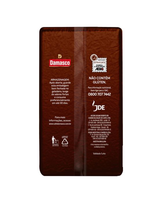 Caracteristicas:Damasco Intenso, apresenta sua versão Extra Forte que combina o aroma e o sabor do café arábica,a fortidão do robusta, em uma torra acentuada, de uma rigorosa seleção de grãos procedentes das principais regiões produtoras de café do Brasil.Caracteristicas:- Marca: Damasco- Peso: 500g- Grau de intensidade: Extra Forte- Pacote a Vácuo- Fabricante: JDE CafésGraus de intensidade dos Blends Damasco- Clássico apresenta grau 7- Intenso Apresenta grau 9- Extraforte Apresenta Grau 10* As especificações podem ser alteradas sem aviso prévio ** Imagem meramente ilustrativa.