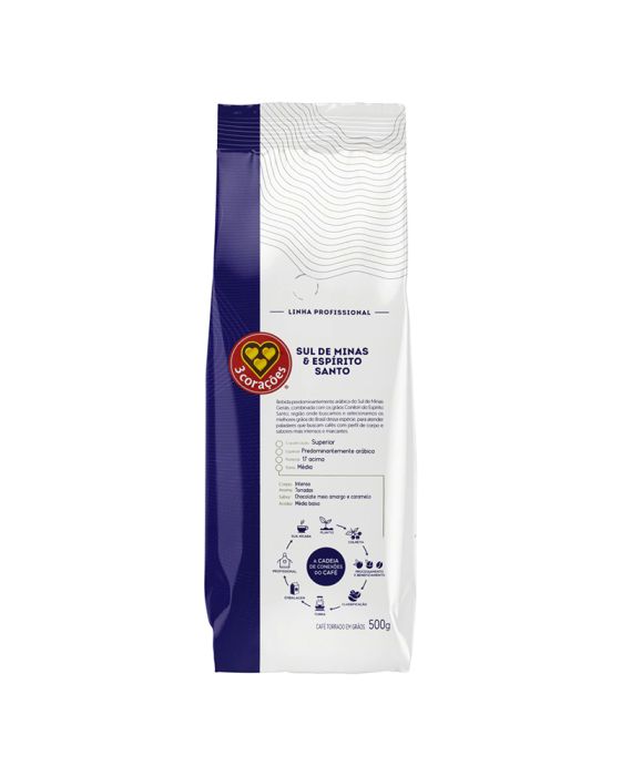 Caracteristicas:Linha Profissional! Café torrado em grãos Sul de Minas & Espírito SantoBebida predominantemente arábica do Sul de Minas Gerais, combinada com os grãos Conilon do Espírito Santo, região onde buscamos e selecionamos os melhores grãos do Brasil dessa espécie, para atender paladares que buscam cafés com perfil de corpo e sabores mais intensos e marcantes.- Conteúdo: 500g- Classificação: Superior- Espécie: Predominantemente Arábica- Peneira: 17 acima- Torra: Média- Corpo: Intenso- Aroma: Torradas- Sabor: Chocolate meio amargo e caramelo- Acidez: Média BaixaDICAS 3CORAÇÕES- Harmonização: Brigadeira, Pão de queijo, Mousse de Chocolate Branco, Queijadinha- Operação: Para cada xícara de café espresso, considere no mínimo 7g de café moído na hora O volume mais praticado para extração do café expresso no Brasil é de 50mL por xícara Tempo ideal de extração entre 25 e 30 segundosGILBERTO NOGUEIRA (Mestre de Torras): Por meio de um processo de qualidade adequado, duas espécies de café podem compor uma ótima bebida: Coffea Arabica e Coffea Canephora (ou robusta). O café arábica se destaca por suas características complexas e refinadas de aroma e doçura. Já o robusta compõem um café mais encorpado e marcante.Nosso blend da linha Food Solutions é cuidadosamente pensado para ampliar ainda mais os resultados sensoriais que a bebida proporciona. * As especificações podem ser alteradas sem aviso prévio ** Imagem meramente ilustrativa.