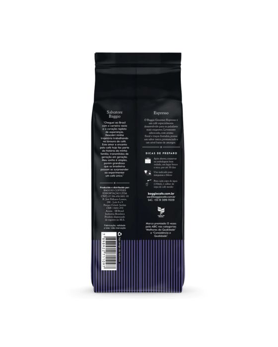 Características:O Baggio Café Especial Espresso é um café especialmente desenvolvido para paladares mais exigentes. Levemente adocicado, com aroma florado e traços frutados, possui um sabor único pronunciado, em um nível muito baixo de amargor.Detalhes:- Marca: Baggio Cafés;- Linha: Cafés;- Variedade: Especial Espresso;- Tipo: Grãos;- Peso: 500g;- Origem: Mogiana Paulista e sul de Minas Gerais;- Contém: 1 unidade do produto;- Tipo de grão: 100% Arábica.Corpo: - Aroma: Floral;- Corpo: Aveludado;- Sabor: Delicado;- Moagem: Média;- Torra: Média;- Bebida: Mole.Dicas de preparo:- Após aberto, conservar em local fresco, seco e arejado por até 30 dias;- Uso indicado para máquinas e filtros;- Para cada copo de água (150ml), 1 colher de sopa de café.Ingredientes:- Café torrado moído.ALÉRGICOS: NÃO CONTÉM LACTOSE. NÃO CONTÉM GLÚTEN. NÃO CONTÉM AÇÚCAR. NÃO CONTÉM LEITE E DERIVADOS. * As especificações podem ser alteradas sem aviso prévio ** Imagem meramente ilustrativa.