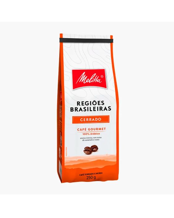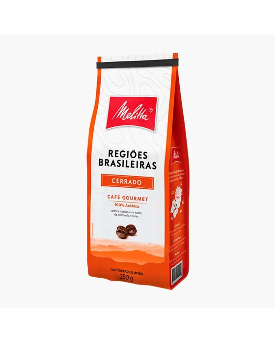Características:Café fresquinho para sentir mais a vida!O Melitta Regiões Brasileiras utiliza grãos cultivados com práticas que preservam o meio ambiente, respeitam a comunidade e valorizam o trabalho dos produtores rurais.Café com aroma intenso, com notas de caramelo a nozes. O cerrado apresenta estações climáticas bem definidas, com temperaturas médias de 18 a 22° C e altitude que varia entre 800 e 1.300 metrosDetalhes:- Marca: Melitta;- Modelo: Regiões Brasileiras;- Linha: Cafés;- Sabor: Cerrado;- Peso: 250g;- Rendimento: 20 xícaras de 50ml;- Contém: 1 unidade do produto;- Moagem: Média;- Aroma: Caramelo e Nozes;- Torra média clara;- Café 100% Arábica;- Produto certificado pela ABIC: Pureza e qualidade.Indústria Brasileira.Ideal para:- Ideal para recepcionar os clientes em clínicas odontológicas, de saúde, salões de beleza, lojas ou até mesmo na copa, refeitório no café da manhã ou da tarde nas empresas.Perfil Aromático:- Aroma: Intenso, com notas de caramelo e nozes.- Sabor: Adocicado com notas de chocolate;- Corpo: Moderado a encorpado;- Acidez: Delicadamente cítrica;- Finalização: Longa.Modo de preparo:- 4 colheres de sopa bem cheias de café + 1 Litro de água quente (Quase fervida).Conservação:- Após aberta, feche e guarde a embalagem em local seco e fresco para preservar melhor o seu café e consuma em até 30 dias.Ingredientes:- Café 100% ArábicaMedidas:- Dimensões do produto: 21,5 x 9,1 x 6cm (CxLxA);- Peso: 250g.ALÉRGICOS: NÃO CONTÉM GLÚTEN.* As especificações podem ser alteradas sem aviso prévio ** Imagem meramente ilustrativa.