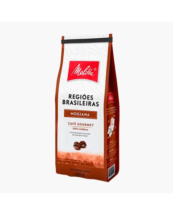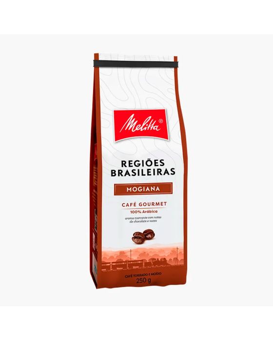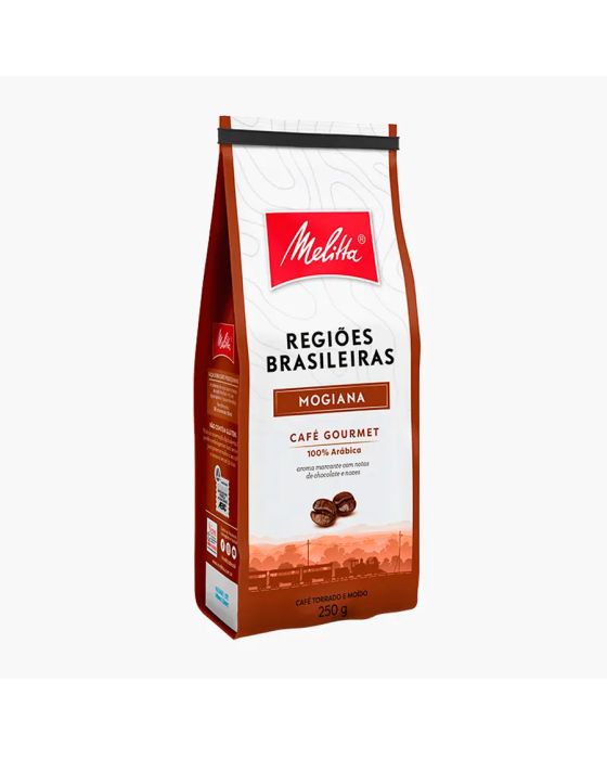 Características:Café fresquinho para sentir mais a vida!O Melitta Regiões Brasileiras utiliza grãos cultivados com práticas que preservam o meio ambiente, respeitam a comunidade e valorizam o trabalho dos produtores rurais.Café com aroma marcante com notas de chocolate e nozes. A região de Mogiana tem temperatura média de 20° C e altitude média entre 900 e 1.000 metros.Detalhes:- Marca: Melitta;- Modelo: Regiões Brasileiras;- Linha: Cafés;- Sabor: Mogiana;- Peso: 250g;- Rendimento: 20 xícaras de 50ml;- Contém: 1 unidade do produto;- Moagem: Média;- Aroma: Chocolate e Nozes;- Torra média clara;- Café 100% Arábica;- Produto certificado pela ABIC: Pureza e qualidade.Indústria Brasileira.Ideal para:- Ideal para recepcionar os clientes em clínicas odontológicas, de saúde, salões de beleza, lojas ou até mesmo na copa, refeitório no café da manhã ou da tarde nas empresas.Perfil Aromático:- Aroma: Marcante frutado com notas de chocolate e nozes.- Sabor: Suavemente adocicado;- Corpo: Cremoso aveludado;- Acidez: Média e Muito Equilibrada;- Finalização: Longa.Modo de preparo:- 4 colheres de sopa bem cheias de café + 1 Litro de água quente (Quase fervida).Conservação:- Após aberta, feche e guarde a embalagem em local seco e fresco para preservar melhor o seu café e consuma em até 30 dias.Ingredientes:- Café 100% ArábicaMedidas:- Dimensões do produto: 21,5 x 9,1 x 6cm (CxLxA);- Peso: 250g.ALÉRGICOS: NÃO CONTÉM GLÚTEN.* As especificações podem ser alteradas sem aviso prévio ** Imagem meramente ilustrativa.