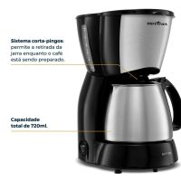 Características:Nada melhor que começar o dia com um café quentinho, não é mesmo? Para isso, conte com a Cafeteira Britânia 18 Cafezinhos BCF19B Jarra de Inox 550W! Com jarra em inox que, além de embelezar a cozinha ou copa do seu escritório, é mais resistente e sofisticada. O inox ainda ajuda a manter a temperatura do café por maior tempo.A base de aquecimento deixa o café quentinho mesmo depois de ter terminado de passar. E, para maior facilidade, a jarra pode ser levada à mesa. Ideal para qualquer hora do dia, a Cafeteira Britânia BCF19B prepara até 18 cafezinhos, de forma rápida e eficiente. Afinal, são 550W de potência. Além disso, conta com porta-filtro removível, para uma limpeza ainda mais prática e descomplicada. Para mais facilidade, a Cafeteira Britânia BCF19B possui sistema corta-pingo que permite a retirada da jarra da cafeteira antes do término do preparo, evitando respingos e bagunça no seu ambiente. Em qualquer momento do dia, Britanie seu café com a Cafeteira Britânia 18 Cafezinhos BCF19B Jarra Inox 550W!Detalhes:- Marca: Britânia;- Modelo: BCF19B;- Linha: Cafeteiras;- Cor: Preto/Inox;- Tensão: 127V;- Potência 550W;- Capacidade do reservatório: 720ml;- Contém: 1 unidade do produto;- Capacidade para 18 cafezinhos;- Acompanha colher dosadora;- Acabamento em inox;- Filtro e porta filtro removíveis facilitando a limpeza;- Placa de aquecimento, mantém o café aquecido após o preparo;- Botão luminoso liga/desliga.Benefícios:- 18 Cafezinhos Ideal para aquele cafezinho a qualquer hora do dia;- Jarra de Inox: Além de ser mais resistente e dar um charme especial, pode ser levada à mesa;- Sistema corta-pingos: Permite a retirada da jarra enquanto o café está sendo preparado;- 550W de potência: Proporciona um preparo rápido e eficiente;- Porta filtro removível: Mais prático, garante uma limpeza descomplicada;- Placa de aquecimento: Mantém o café aquecido após o preparo, sem alterar o sabor.Energia:- Tensão: 127V;- Potência: 550W;- Consumo (kW/h): 0,55 kW/h.Composição:- Fabricado em plástico e metal.Medidas:- Dimensões do produto: 19,5 x 17 x 27,5cm (CxLxA);- Dimensões da embalagem: 22 x 15,7 x 28cm (CxLxA);- Peso do produto: 0,970kg;- Peso da embalagem: 1,16kg.Conteúdo da embalagem: 1 Cafeteira 18 Cafezinhos BCF19B 550W Britânia e 1 Manual de Instruções.Garantia do fornecedor: 1 ano contra defeitos de fabricação.* As especificações podem ser alteradas sem aviso prévio ** Imagem meramente ilustrativa.