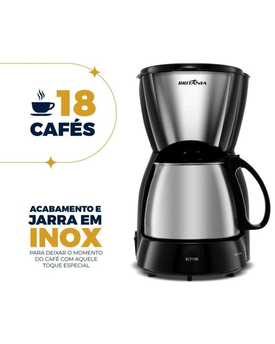 Cafeteira Eletrica 18 Xicaras Bcf19b Jarra Inox 127v Britania