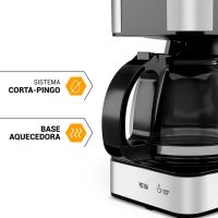 Características:- Voltagem: 220V- 20 cafezinhos;- Filtro de café removível;- Porta filtro removível;- Sistema corta pingos;- Capacidade do reservatório de 0,72L;- Luz indicadora de funcionamento;- Indicadores de nível de água;- Garantia de 1 ano; * As especificações podem ser alteradas sem aviso prévio ** Imagem meramente ilustrativa.