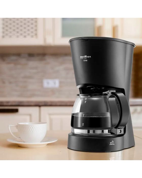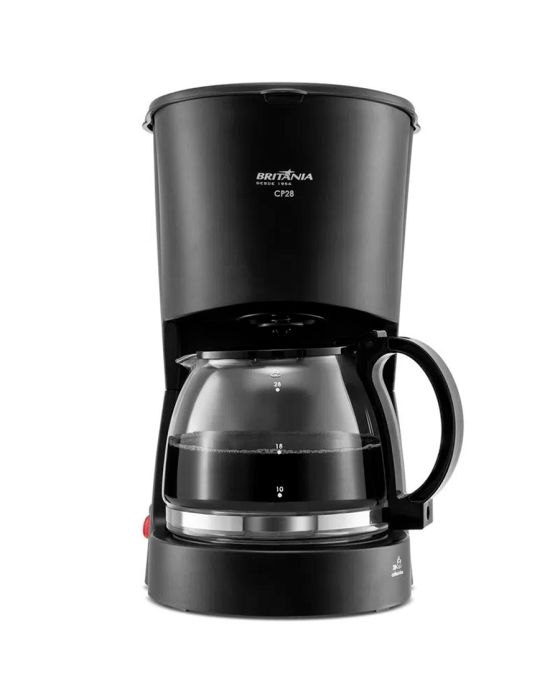 Características: Já ouviu dizer que os melhores momentos são compartilhados? É verdade, a Cafeteira Britânia CP28tem capacidade para até 28 cafezinhos de uma vez só! O filtro é permanente e removível, dispensando o uso de filtro de papel e facilitando a limpeza; Contém placa de aquecimento que conserva a temperatura do café sem alterar o sabor; O reservatório de água com graduação indica o nível de água do reservatório; Possui sistema corta-pingo que permite a retirada da jarra enquanto o café está sendo preparado; Cafezinhos em todos os momentos, quentinhos e do jeito que você gosta. A Cafeteira Britânia CP28 vai fazer seu dia mais feliz!- Potência (W):550 W- Consumo (kW/h):0,55- Cor:Preto- Capacidade (cafezinhos):28- Sistema corta-pingo: Sim- Função Timer: Não- Display Digital: Não- Placa de aquecimento: Sim- Capacidade do reservatório de água (L): 0,75 L- Acompanha colher dosadora: Não- Filtro permanente: Sim- Jarra pode ser levada à mesa: Sim* As especificações podem ser alteradas sem aviso prévio ** Imagem meramente ilustrativa.
