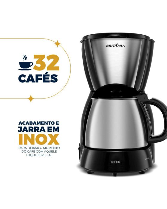 Cafeteira Eletrica 32 Xicaras Bcf32b Jarra Inox 220v Britania