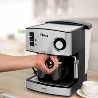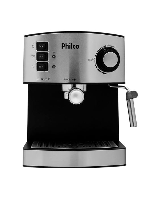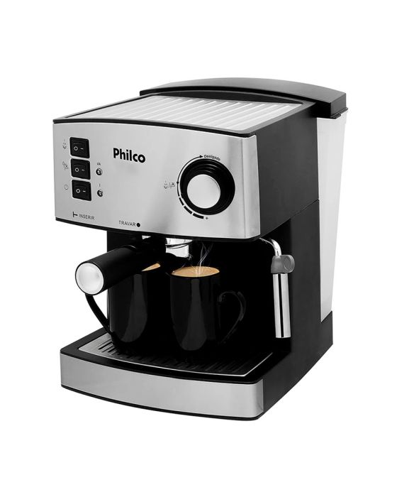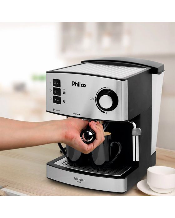 Características:Com a Cafeteira Philco Coffee Express fica mais gostoso tomar um bom café!Ela conta com pressão de 15 bar, ideal para preparar um saborosíssimo café expresso ou cappuccino, e é possível preparar até duas xícaras de café ao mesmo tempo. Possui bico vaporizador para deixar suas bebidas mais espumantes e saborosas.Seu reservatório de água possui graduação que indica o nível de água. A capacidade é para até 1600 ml para aproveitar a Coffee Express em família.Possui depósito de resíduo removível para facilitar a limpeza após o preparo e o filtro removível é em aço inox e permanente. Muito mais prático e sustentável. A Cafeteira Philco Coffee Express garante o café mais gostoso e quentinho ao conforto da sua casa, a qualquer momento, do seu jeito!Detalhes:- Marca: Philco;- Modelo: Coffe Express 15 Bar;- Linha: Cafeteiras Elétricas;- Cor: Preto/Inox;- Tensão: 220V;- Potência 850W;- Capacidade: 1,6L;- Contém: 1 unidade do produto;- Cafeteira Expresso com pressão de 15Bar;- Prepara Café Expresso e Cappuccino;- Filtro permanente em aço com duas saídas;- Acompanha filtro;- Faz duas xícaras de café ao mesmo tempo;- Reservatório de água com capacidade 1600ml;- Bico vaporizador;- Luz Indicadora;- Placa copo inoxidável durável para xícaras de café pré-aquecimento;- Pode ser Usado Café Moído;- Controle de saída de vapor;- Colher dosadora;- Filtro removível em aço inox;- Depósito de resíduos removível;Benefícios:- 15 Bar de pressão: Pressão ideal para preparar um saborosíssimo café expresso e cappuccino;- Bico Vaporizador: Para deixar suas bebidas mais espumantes e saborosas;- Botões Indicadores: Vapor, água quente e liga/desliga;- Reservatório de água com graduação: Indica o nível de água do reservatório, com capacidade para 1600ml;- Depósito de resíduo removível: Facilita a limpeza;- Acompanha Colher dosadora: Para dosagem exata do pó de café;- Filtro removível em aço inox: Para uma ou duas xícaras de café;- Filtro permanente em aço com duas saídas: Prepara duas xícaras de café expresso ao mesmo tempo;- Luzes indicadoras de funcionamento: Indica o funcionamento do aparelho.Energia:- Tensão: 220V;- Potência: 850W;- Consumo (kW/h): 8,5 kW/h;- Tomada (A): 10A (220V);- Pinos (2 ou 3): 3 pinos.Composição: - Fabricado em Plástico e Metal.Medidas:- Dimensões do produto: 24 x 30 x 30cm (CxLxA);- Dimensões da embalagem: 26 x 31,5 x 32cm (CxLxA);- Peso do produto: 3,18kg;- Peso da embalagem: 3,74kg.Conteúdo da embalagem: 1 Cafeteira Coffee Express 15 Bar Filtro Permanente Philco e 1 Manual de Instruções.Garantia do fornecedor: 1 ano contra defeitos de fabricação.* As especificações podem ser alteradas sem aviso prévio ** Imagem meramente ilustrativa.
