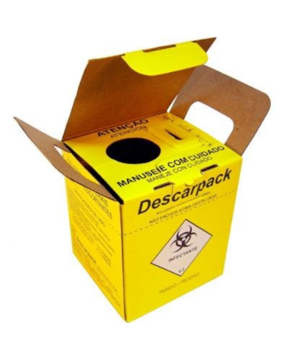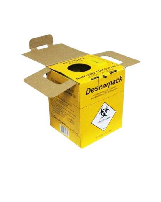 Caracteristicas:O coletor em papelão é utilizado para o descarte de materiais perfurocortantes como agulhas, lancetas, vidros em geral, lâminas de bisturi, ampolas e cateter.Possui contra-trava e alça dupla para transporte.Ideal para ambiente hospitalar, clínicas, consultórios e estúdios de tatuagem. .- Modelo: Papelão 7 litros- Medidas: 21,2cm x 16,2cm x 21cm x 0,7cm ( Frente X Profundidade X Altura X Diâmetro Bucal ).O Kit é constituído de:- Sacola plástica amarela.- Fundo rígido.- Cinta lateral.- Bandeja interna.* As especificações podem ser alteradas sem aviso prévio ** Imagem meramente ilustrativa.