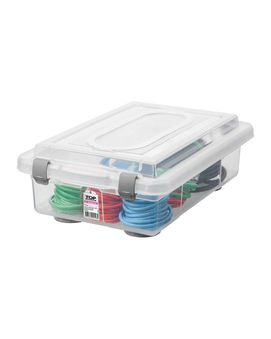 Características:Organizador com design robusto, transparente e base larga garante apoio firme e não deixa marcas no contato pois o peso do conteúdo está sempre bem distribuído. Além disso, foi projetado em formatos modulares que permitem empilhamento fácil e seguro. É aquela caixa organizadora que coloca o escritório ou a sua casa em ordem. Detalhes:- Fechamento seguropossui quatro grampos com aquele “click” no fechamento. - Transparente permite excelente visualização do conteúdo e dispensa o uso de etiquetas. - Possui pegas que ajudam no manuseio. - Diversas utilidades para diversos ambientes- Capacidade: 2,3L- Peso: 188 gramas- Marca: Sanremo- Referência: 950Dimensões º Superior:- Largura: 17cm - Altura: 8,5cm- Comprimento: 26,2cmº Inferior:- Largura: 14,2cm- Altura: 6cm- Comprimento: 22cm * As especificações podem ser alteradas sem aviso prévio ** Imagem meramente ilustrativa