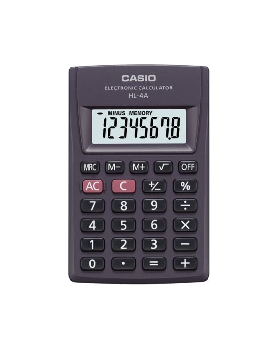 Caracteristicas:A linha de calculadoras Casio facilita o seu dia a dia em casa, no trabalho e na faculdade. Fáceis de usar e prática para levar em qualquer lugar. Precisas e seguras, as calculadoras básicas Casio estão desenhadas para donas de casa, estudantes e profissionais. Essa calculadora conta com as funções das 4 operações, raiz quadrada e teclas % e +/-. De fácil uso e desenhada para adaptar-se aos seus desafios, a HL-4A se encarrega dos cálculos.- 8 dígitos- Percentual básico- Cálculo de percentuais básicos.- Visor grande de fácil leitura.- Teclas de plástico- Cálculo de Porcentagem (%)- 4 operações básicas (+ , - , x , / )- Cálculo de Raiz Quadrada- Memória- Alimentação: Pilha Botão (Bateria LR54 x 1)- Dimensões (L x P x A) : 87×56×8,8mm- Peso: 25g- Garantia: 1 Ano contra defeitos de fabricação* As especificações podem ser alteradas sem aviso prévio ** Imagem meramente ilustrativa.