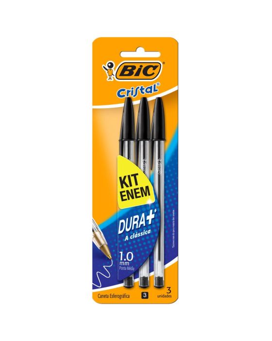 Caracteristicas:-A clássica caneta esferográrica Bic Cristal em uma embalagem com 3 unidades preta.-Indicada para concursos, como ENEN* As especificações podem ser alteradas sem aviso prévio ** Imagem meramente ilustrativa.