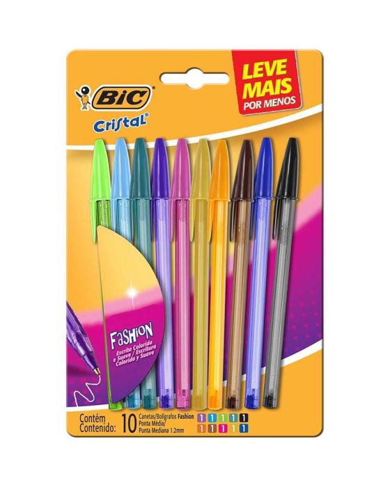 Caneta Esferografica Cristal Fashion 1.2mm Bls C/10 Cores Bic