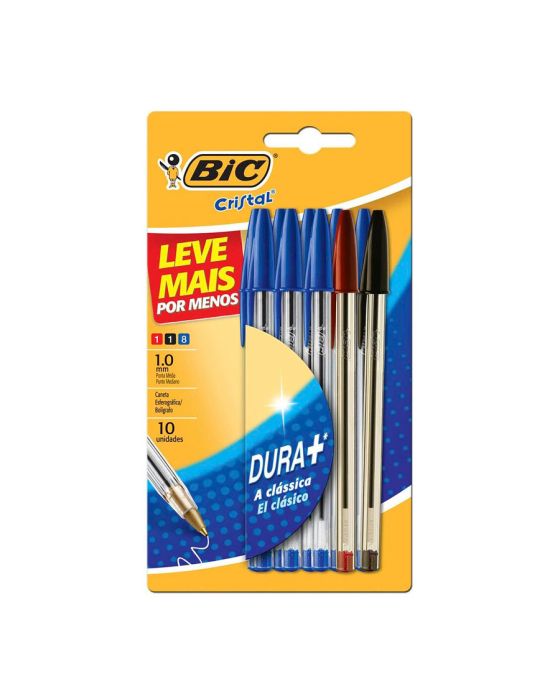 Caneta Esferografica Cristal Leve 10 Pague 7 1.0mm Azul/preta/vermelha Bls C/10 Bic