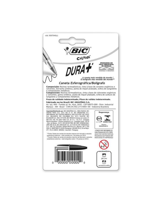 Caracteristicas:Caneta esferográfica clássica e favorita em milhares de lares, escritórios e escolas no mundo. Possui corpo hexagonal que assegura o conforto na escrita e transparente para visualização da tinta. Tinta de alta qualidade, que seca rapidamente evitando borrões na escrita. Maior Durabilidade: Escreve até 2 Km. Escrita macia. Fabricada com a quantidade certa de matéria-prima para uso prolongado e seguro. Não contém PVC. Possui tampa da mesma cor da tinta e também é ventilada em conformidade com padrão ISO. Na ponta conta com uma esfera de Tungstênio, perfeita e muito resistente, quase mais duras que o diamante. 100% das esferográficas são feitas por um processo altamente controlado. Desde seus início em 1950, a Companhia vem aperfeiçoando as máquinas e os processos de fabricação necessários para produzir canetas de alta qualidade e produzidas em massa.- A clássica caneta esferográfica, líder mundial- Favorita em milhares de lares, escritórios e escolas- Corpo Hexagonal- Ponta média 1,0mm com esfera de tungstênio- Tampa ventilada- Contém 10 unidades (8 azuis, 1 preta e 1 vermelha)- Cor: Azul, Preto e Vermelho* As especificações podem ser alteradas sem aviso prévio ** Imagem meramente ilustrativa.