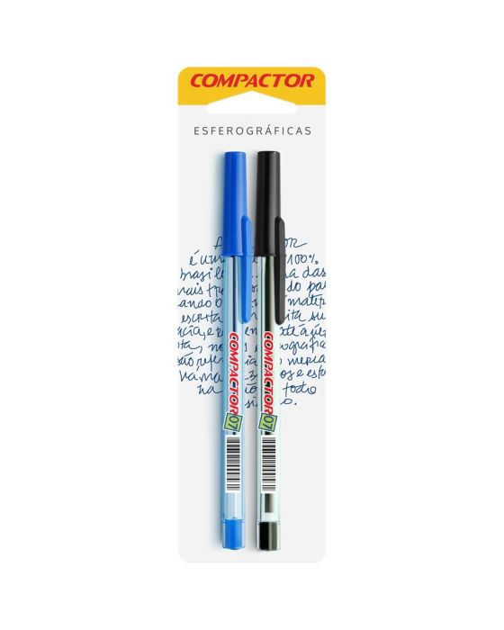 Caneta Esferografica Fina 0.7mm Bls C/2 Azul E Preta Compactor
