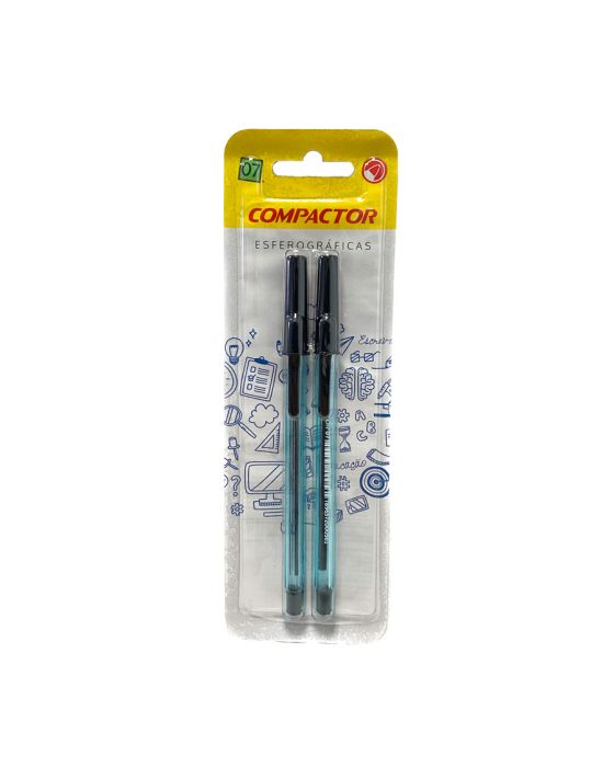 Caneta Esferografica Fina 0.7mm Bls C/2 Preta Compactor