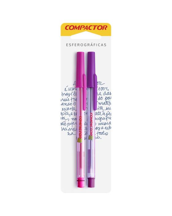 Caneta Esferografica Fina 0.7mm Bls C/2 Rosa E Violeta Compactor