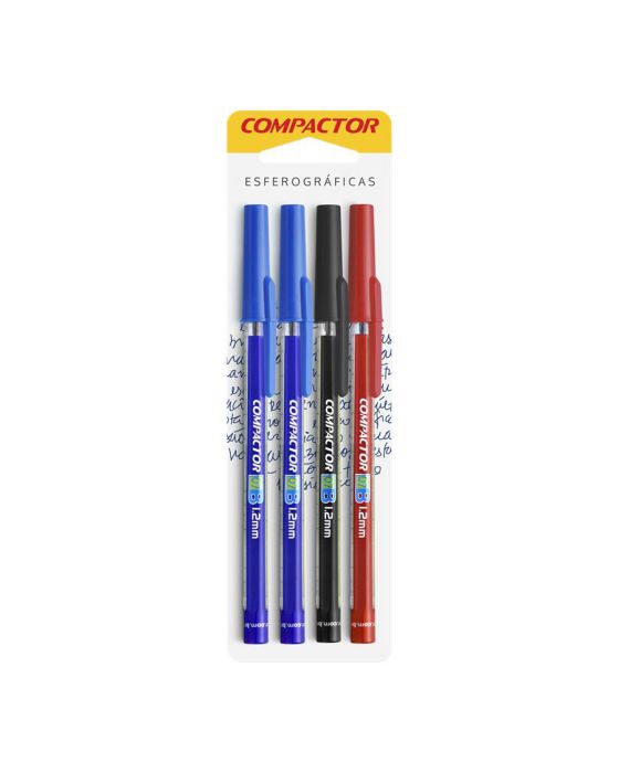 Caneta Esferografica Media 07b 1.2mm Bls C/4 2az/1vm/1pr Compactor