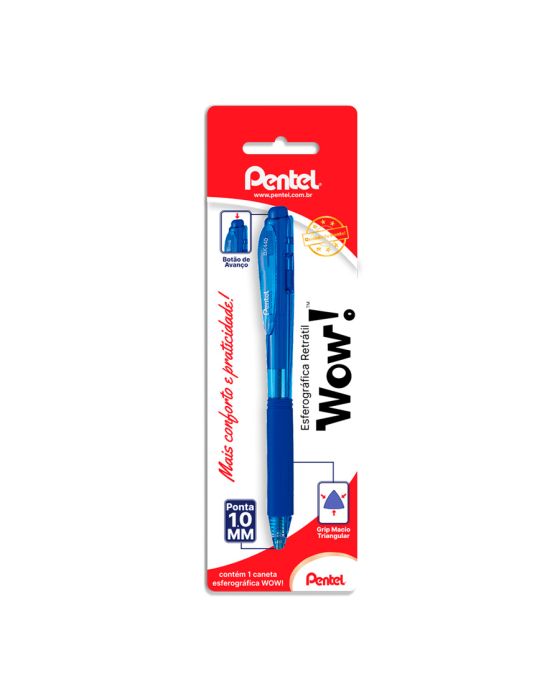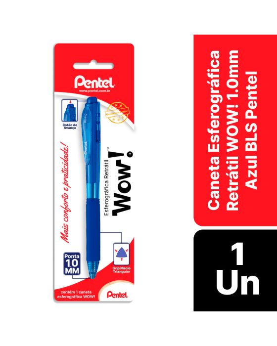 Caneta Esferografica Retratil Wow 1.0mm Azul Bls C/1 Bk440-c Pentel