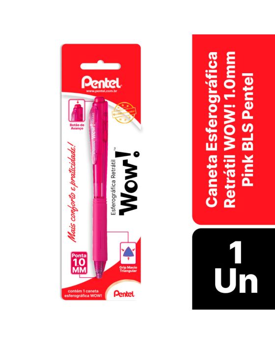 Caneta Esferografica Retratil Wow 1.0mm Pink Bls C/1 Bk440-p Pentel