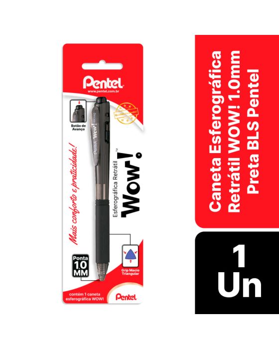 Caneta Esferografica Retratil Wow 1.0mm Preta Bls C/1 Bk440-a Pentel