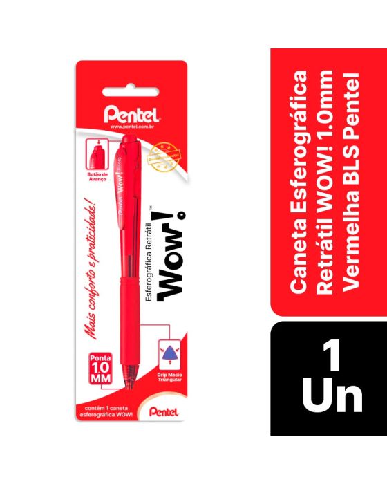 Caneta Esferografica Retratil Wow 1.0mm Vermelha Bls C/1 Bk440-b Pentel