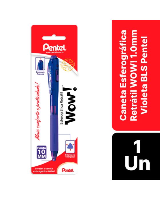 Caneta Esferografica Retratil Wow 1.0mm Violeta Bls C/1 Bk440-v Pentel