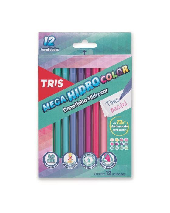 Caneta Hidrografica C/12 Cores Tons Pastel Tris