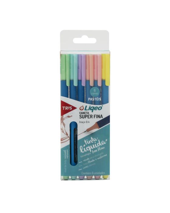 Caneta Hidrografica C/6 Cores Tons Pastel Liqeo Tris
