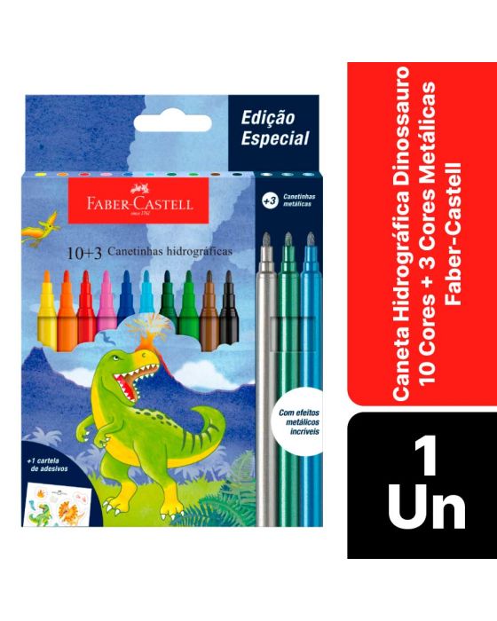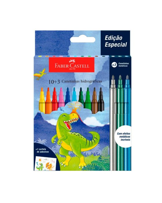 Caneta Hidrografica Dinossuro 10 Cores + 3 Cores Metalicas 555409 Faber-castell