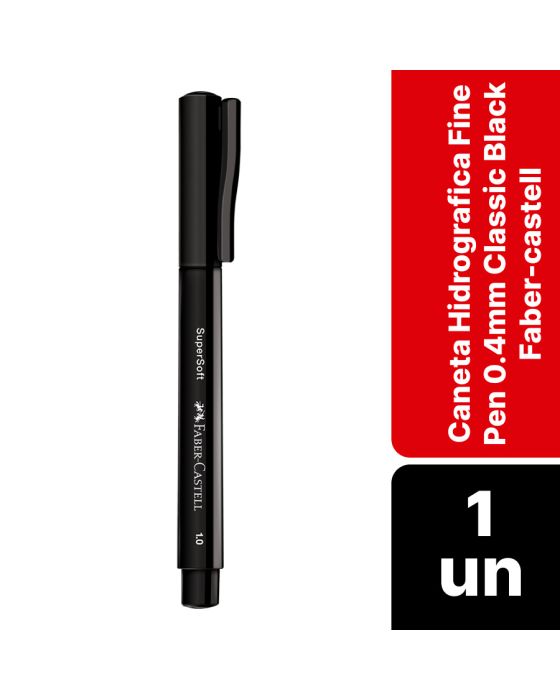 Características:As canetas Fine Pen são incríveis para escrever, contornar e desenhar. Com a ponta ultrafina de 0.4mm e a tinta que não passa para o outro lado da folha, suas anotações nunca mais serão iguais. Vem colorir o mundo com as Fine Pen Colors.Detalhes:- Marca: Faber-Castell;- Modelo: Classic Black Fine Pen;- Referência: FPB/PRZF;- Linha: Canetas Hidrográficas;- Cor: Preto;- Ponta: 0,4mm;- Contém: 1 unidade do produto;- Formato: Triangular;- Traço preciso;- Tinta de secagem rápida resistente á agua e a umidade;- Exclusivas esferas antideslizantes, firmeza ao escrever.* As especificações podem ser alteradas sem aviso prévio ** Imagem meramente ilustrativa.