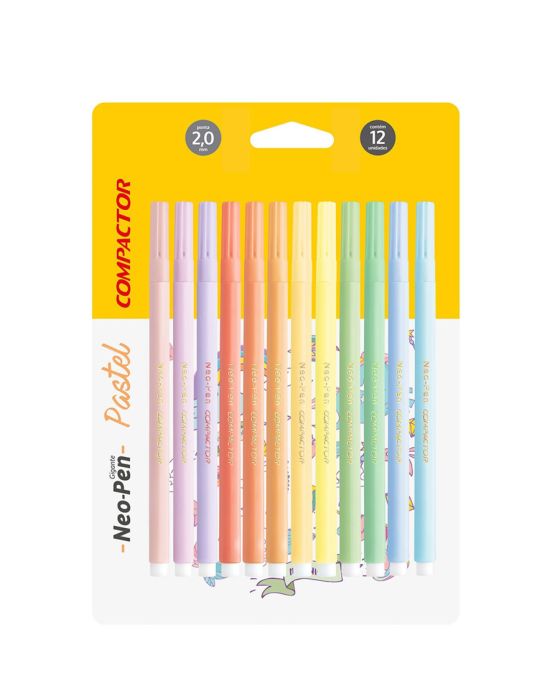 Caneta Hidrografica Gigante C/12 Cores Neo Pen Pastel Compactor