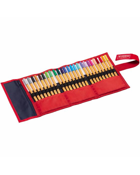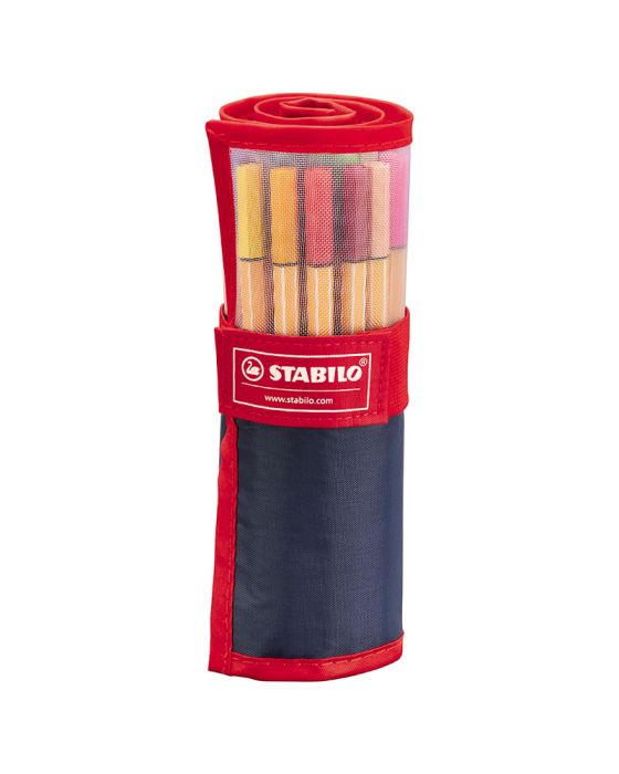 Caracteristicas:-A tradicional caneta Stabilo 88 em um estojo de enrolar com 25 cores:Verde água, azul marinho, salmão, azul royal, maça verde, verde oliva, vermelho, azul escuro, verde claro, marrom escuro, preto, azul turquesa, verde escuro, laranja, violeta, rosa, azul claro, lilás, lilás claro, verde azeitona, marrom claro, cinza claro, cinza escuro.-Caneta Extra fina ideal para traços finos.-Tampa ventilada-Ponta sintética.-Ponta com reforço metálico-Traço 0,4mm -Tinta a base de água -Alto rendimento-Longa duração-Secagem rápida.* As especificações podem ser alteradas sem aviso prévio ** Imagem meramente ilustrativa