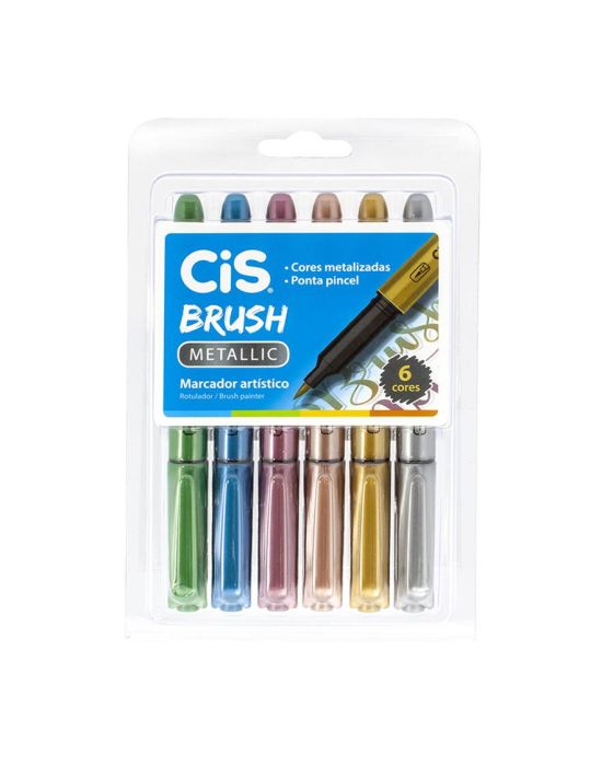 Caneta Pincel Brush C/6 Cores Metalicas Cis Ww