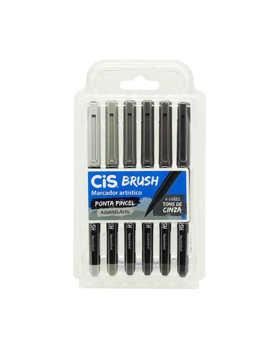Caneta Pincel Brush C/6 Tons De Cinza Cis